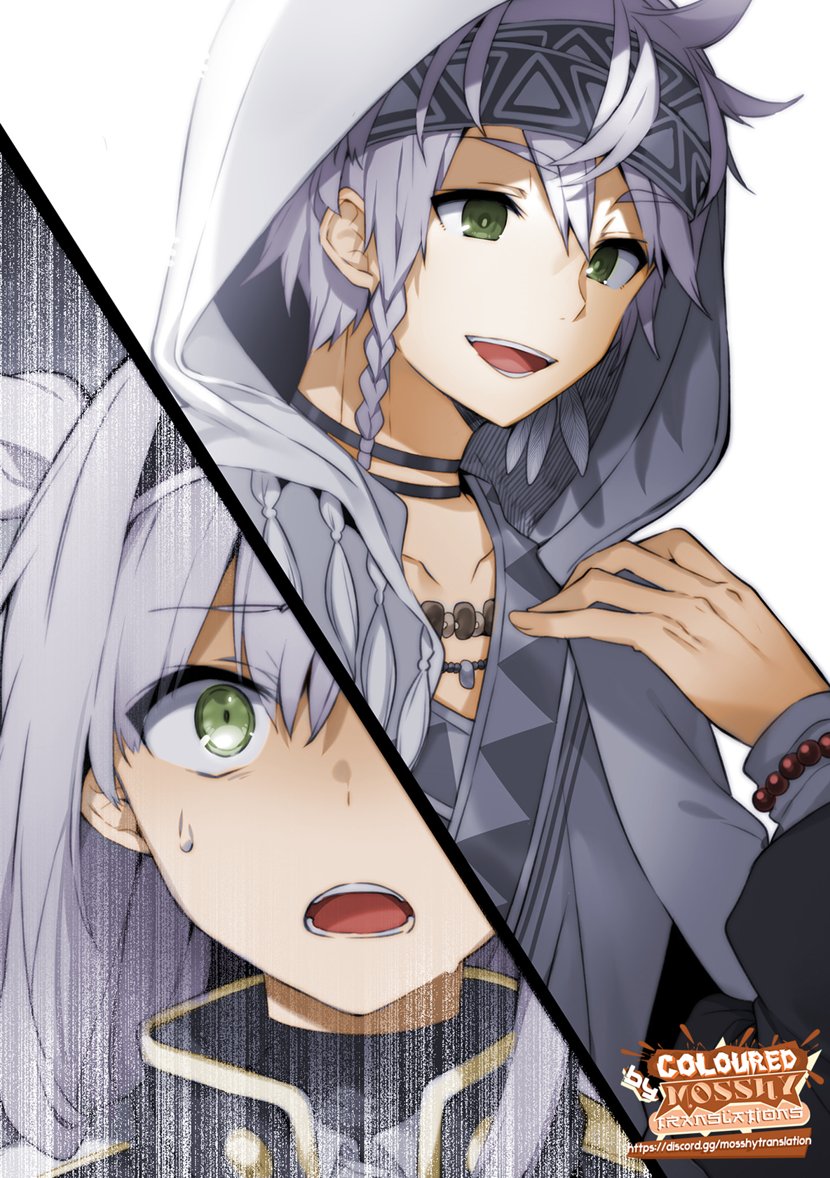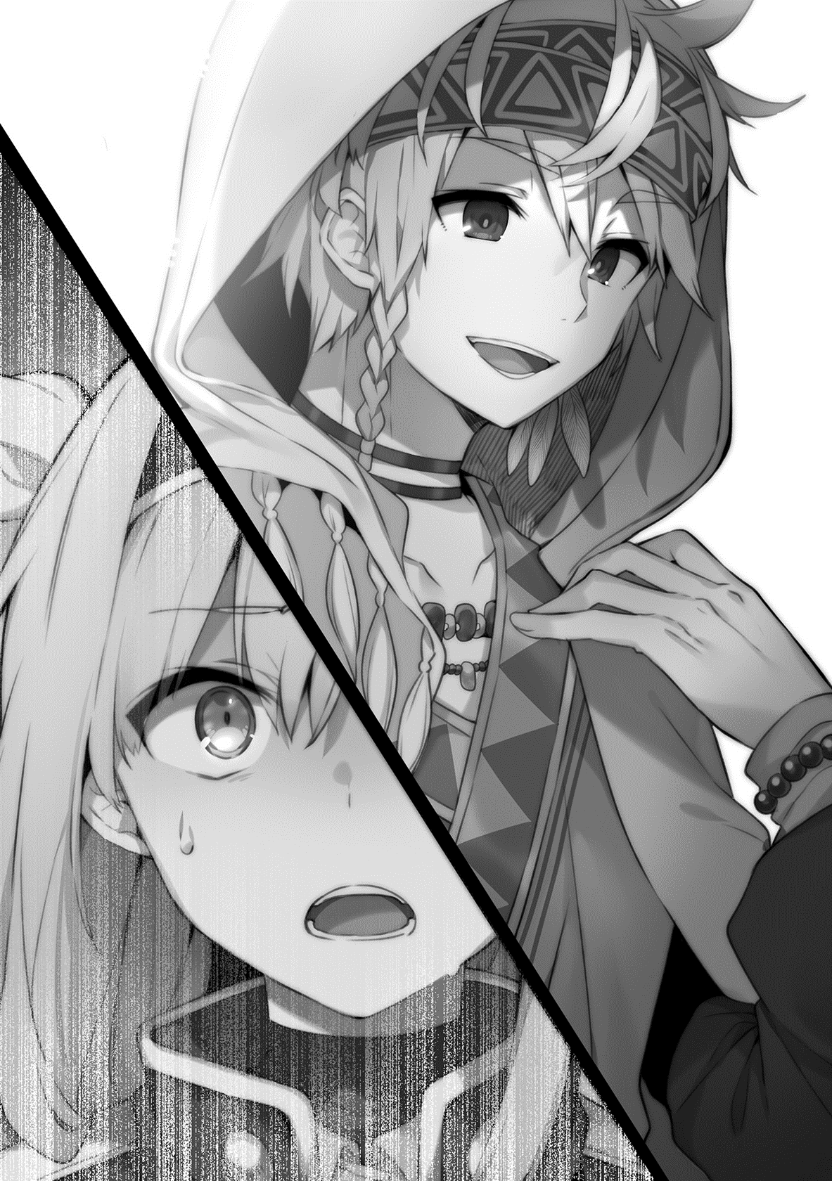 He appeared to be around Rumia’s age, perhaps slightly older—a strikingly beautiful silver-haired boy draped loosely in a robe embroidered with ethnic patterns.