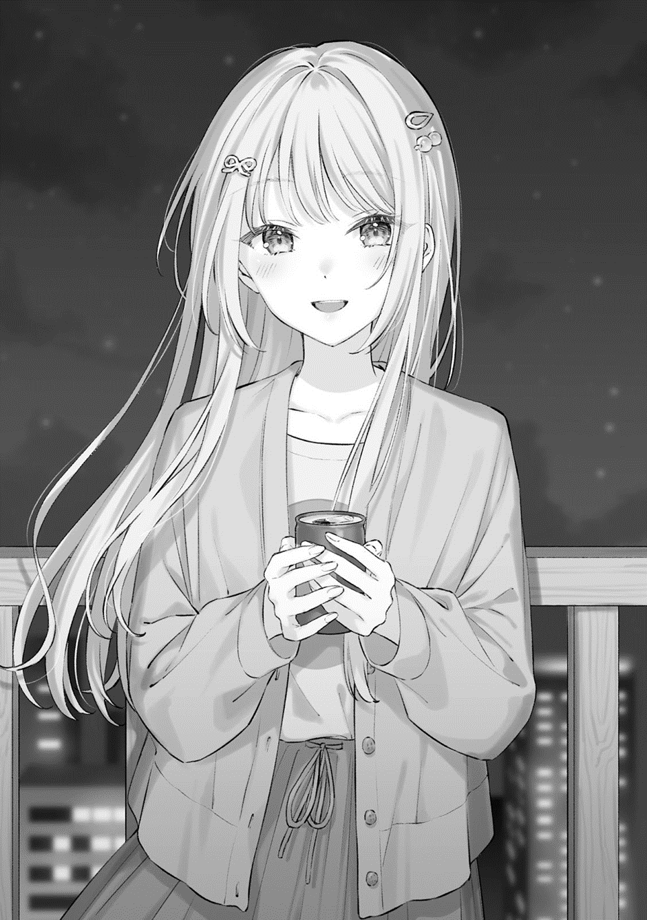 The lights from office buildings and the distant bustling streets paint the night vividly, captivating Touya’s eyes.