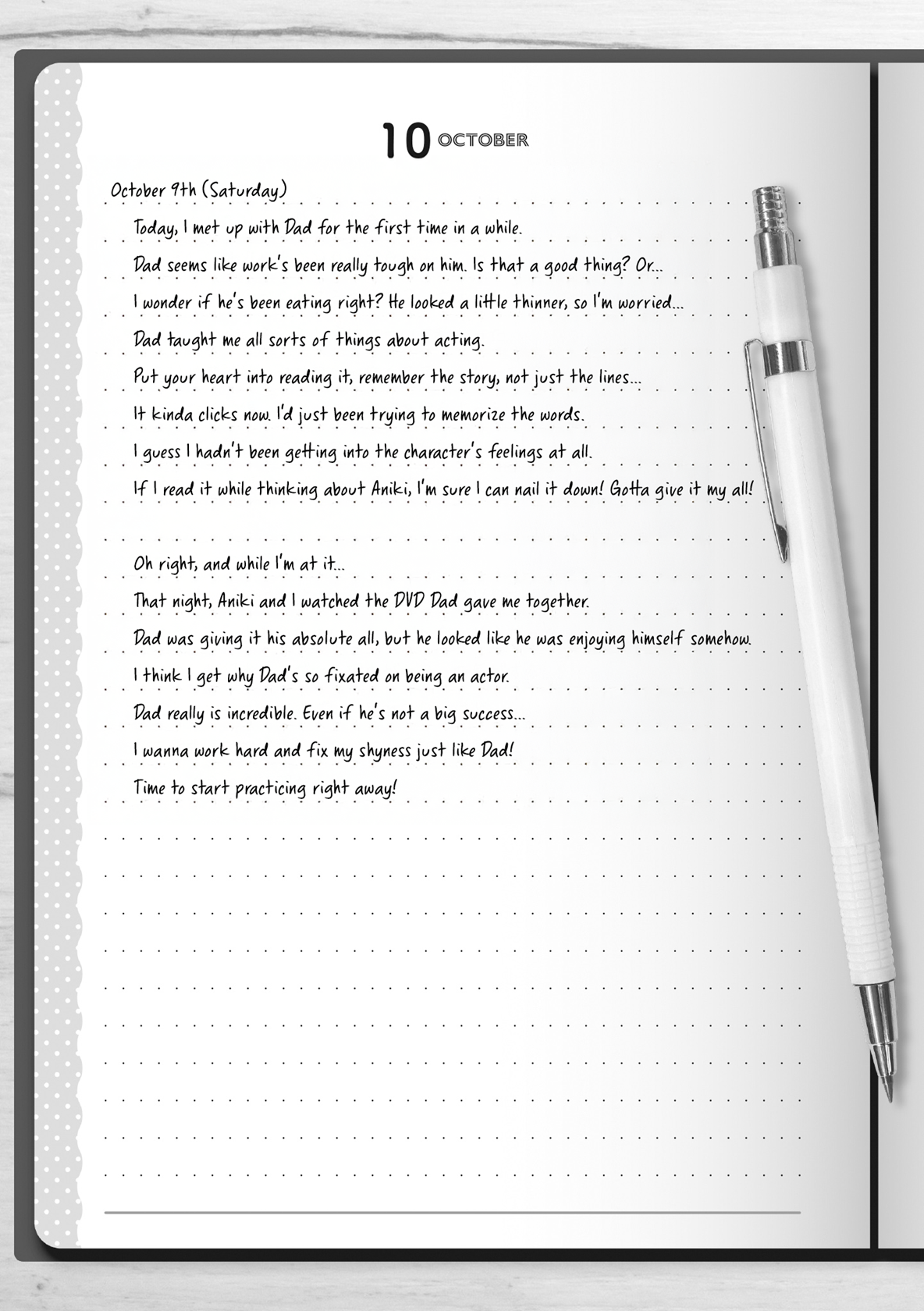 The past three days of drama club practice had relied heavily on scripts, but starting next week, they planned to rehearse with minimal dependence on them. This meant Akira needed to memorize a substantial portion over the Friday-to-Sunday weekend.