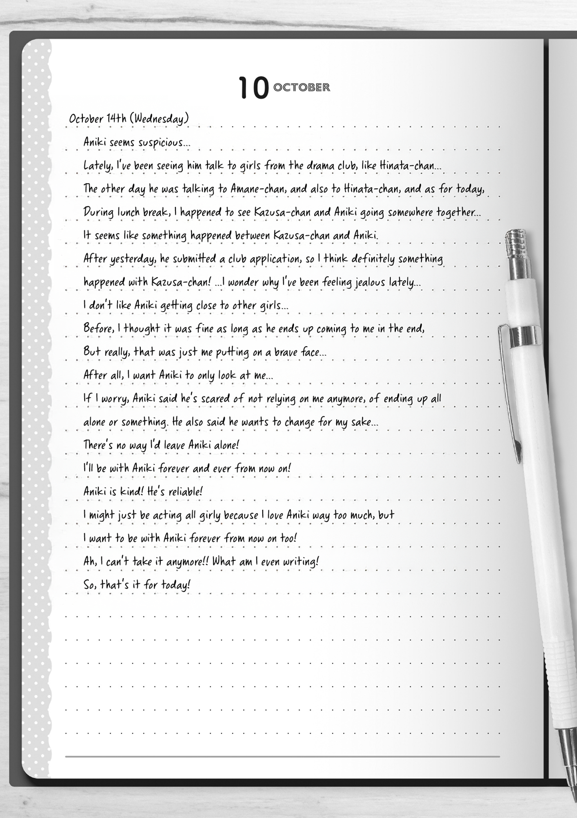 Even during breaks, she’d stare intently at the pages, deep in thought—or so I’d assumed. But then she’d start scribbling notes in red pen all over the margins. That’s when Nishiyama and Ito approached her with bright expressions.