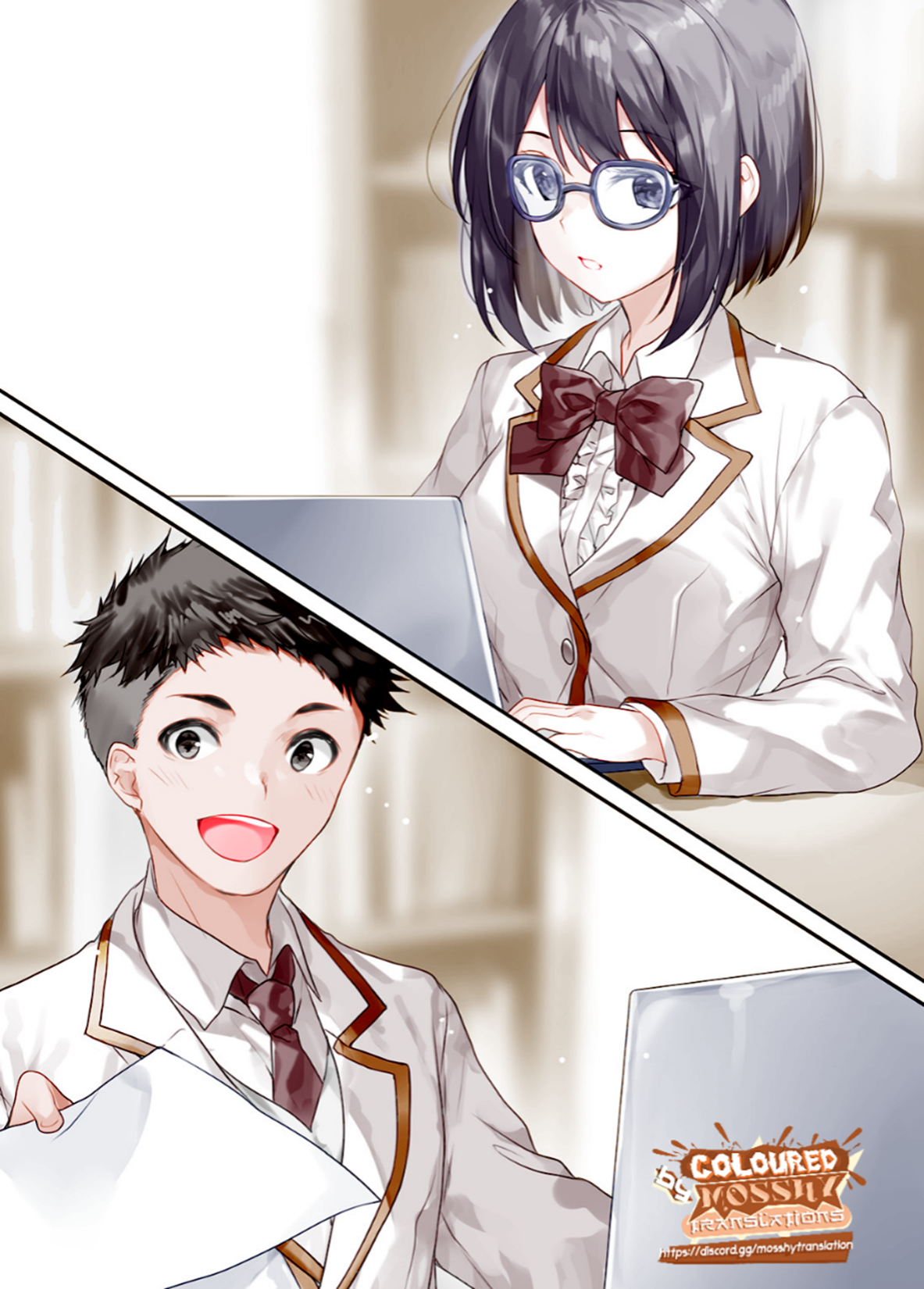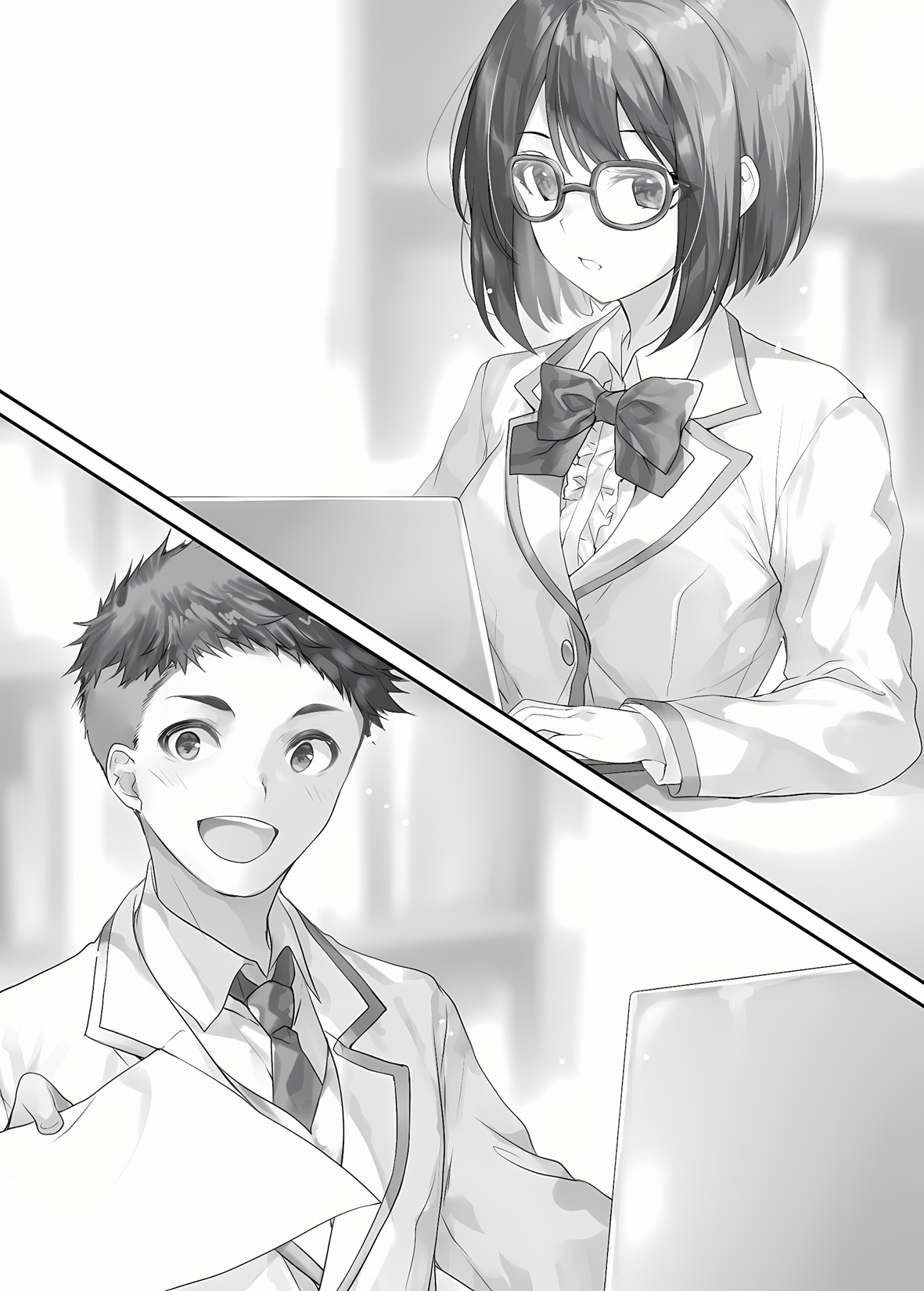 Where Tennouji-san’s gaze fell, a girl with a bob cut and glasses was typing on her keyboard at a furious pace. Reflected in her lenses was an endless string of numbers. Skilled at calculations, she replied without stopping the movement of her fingers.